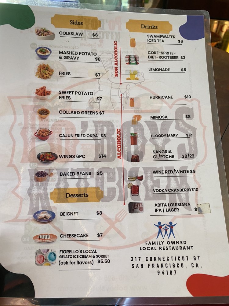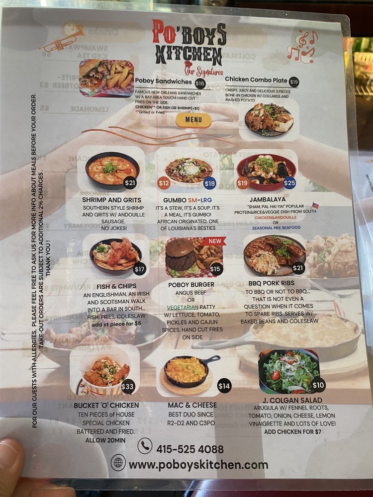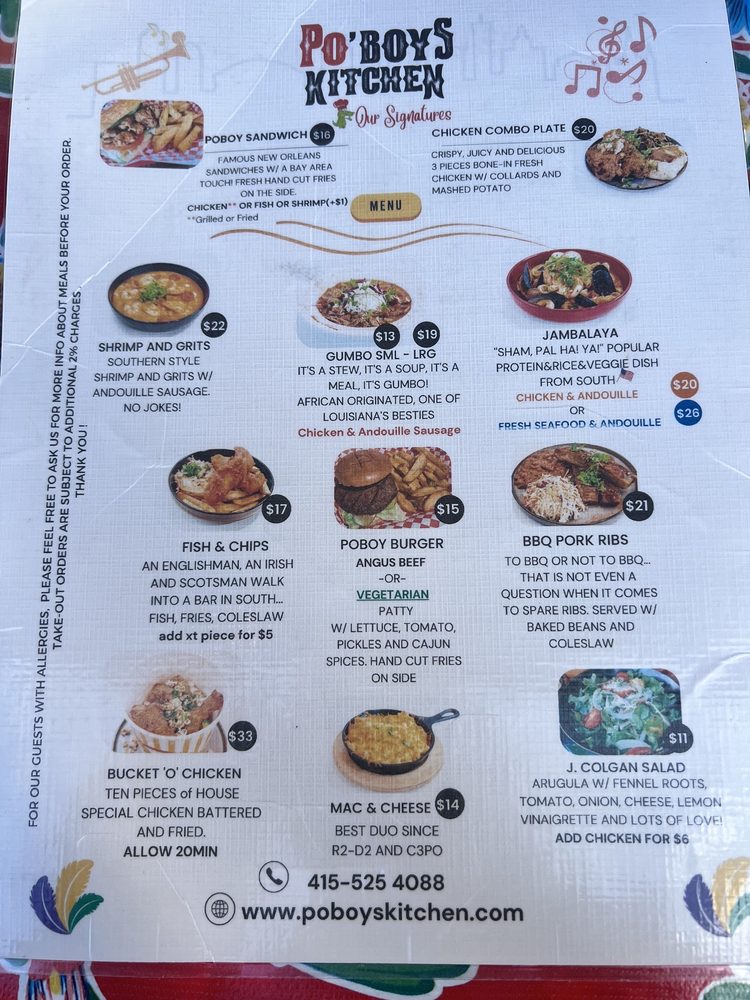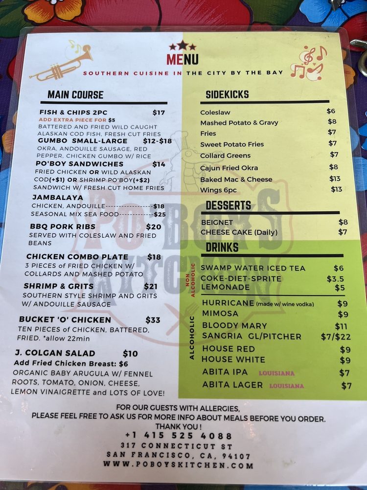 Introducing PoBoys Kitchen, located in San Francisco, California, specializing in Cajun/Creole-American cuisine. This restaurant offers a unique dining experience with options for delivery, takeout, and catering. The menu features flavorful dishes such as BBQ Pork Ribs, Chicken Combo Plate, Gumbo, and Seafood Jambalaya. Customers have raved about the quality of the food, with reviews mentioning the crispy Fried Chicken, delicious Seafood Jambalaya, and addictive Fried Okra. The cozy atmosphere, attentive service, and attention to detail in plating make dining at PoBoys Kitchen a delightful experience. Don't miss out on their signature Beignets for a sweet ending to your meal. Whether you're a fan of Cajun cuisine or looking to try something new, PoBoys Kitchen promises a memorable dining experience with a taste of the South.